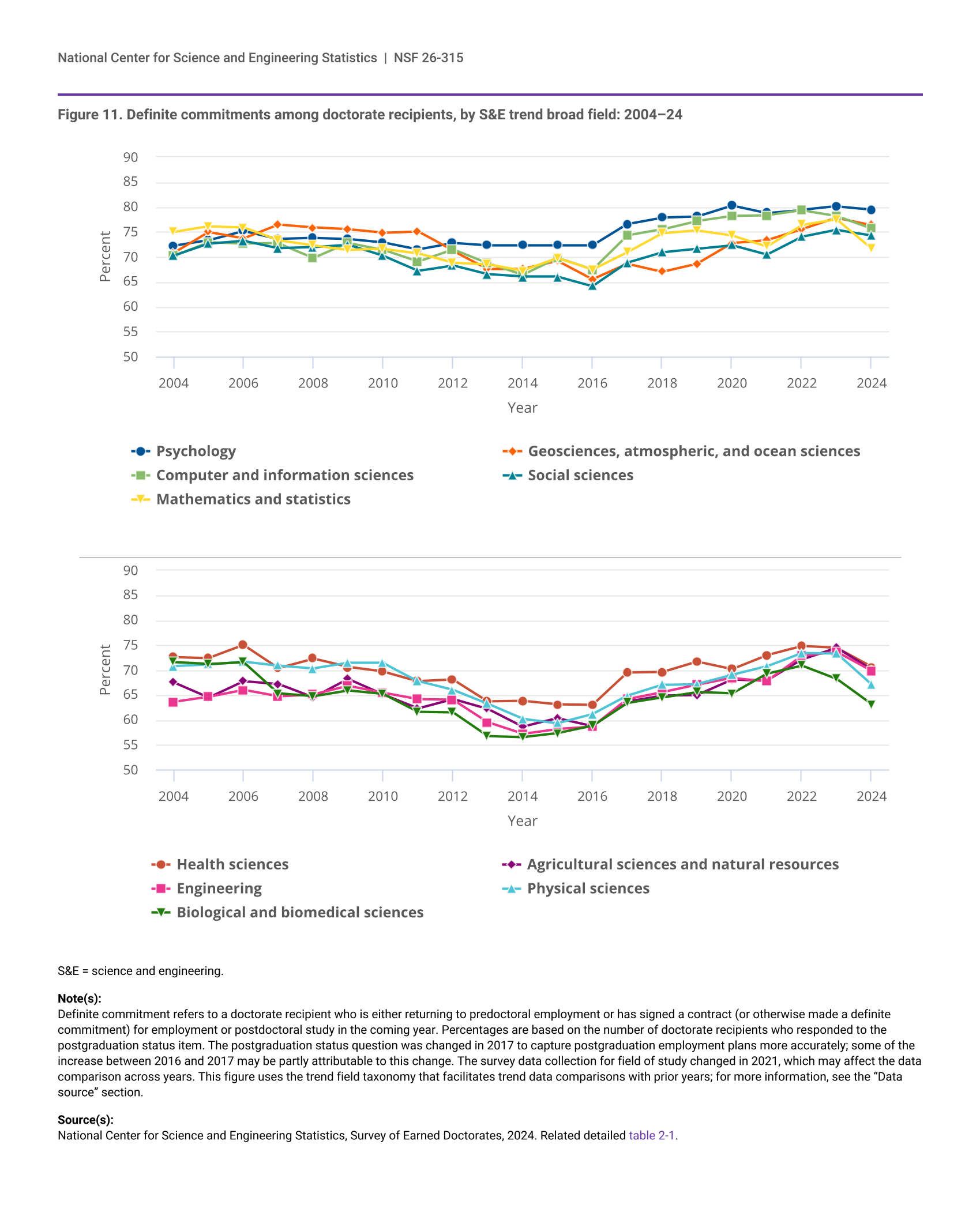 National Center for Science and Engineering Statistics, Survey of Earned Doctorates, 2024. Related detailed table 1-8 and table 1-11.