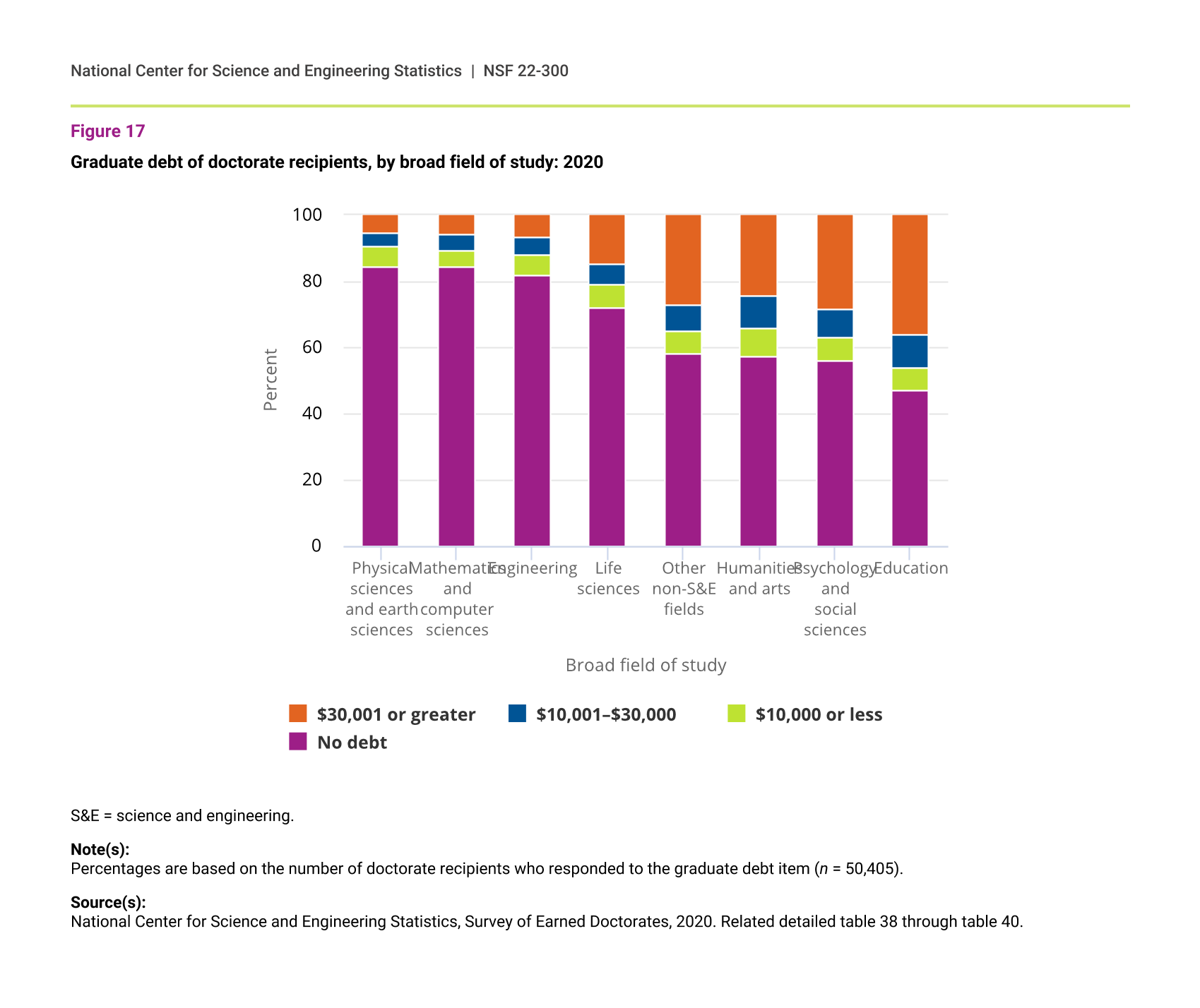 Percentages are based on the number of doctorate recipients who responded to the graduate debt item (n = 50,405).