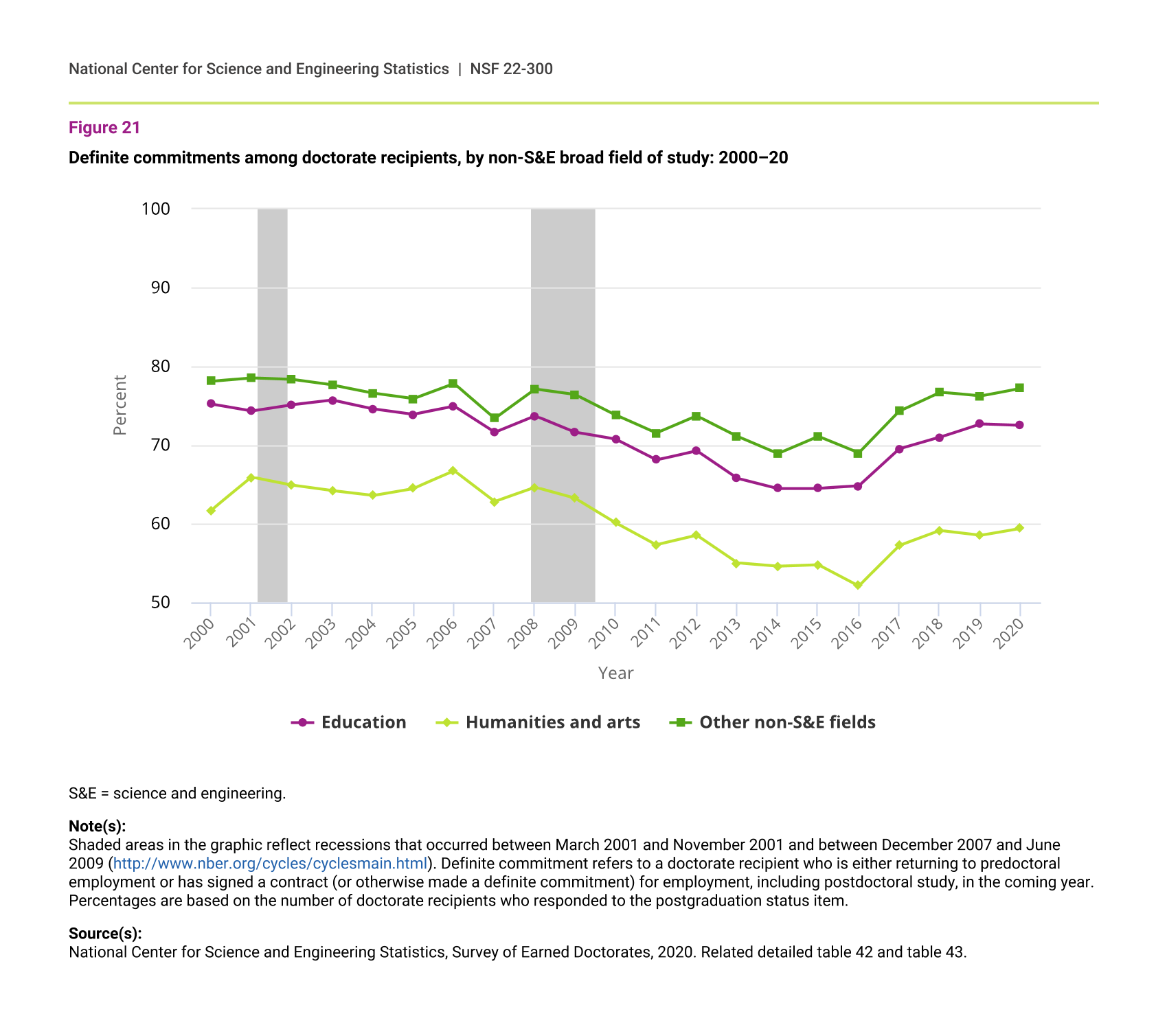 Definite commitments among doctorate recipients, by non-S&E broad field of study: 2000–20