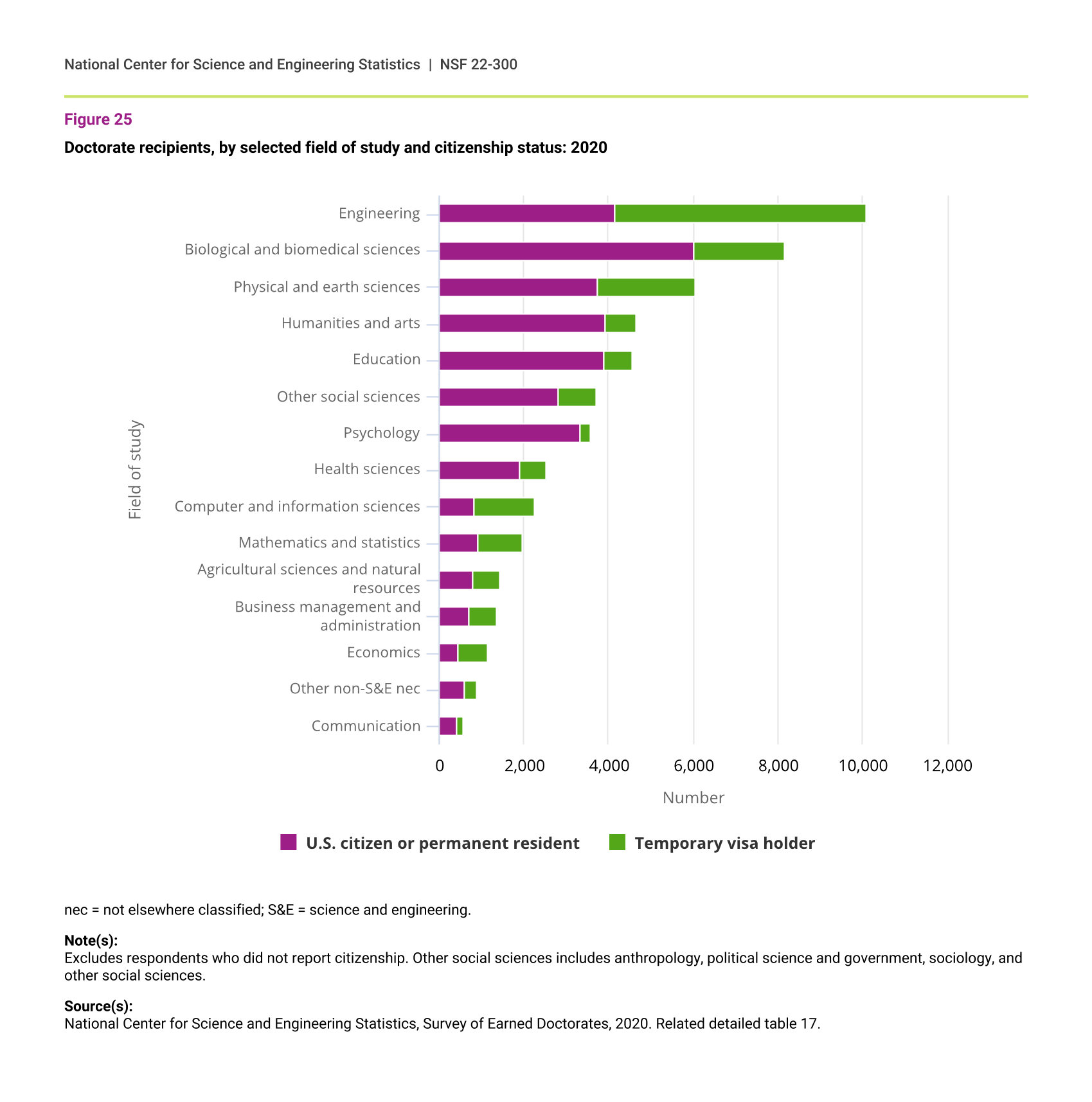 Doctorate recipients, by selected field of study and citizenship status: 2020