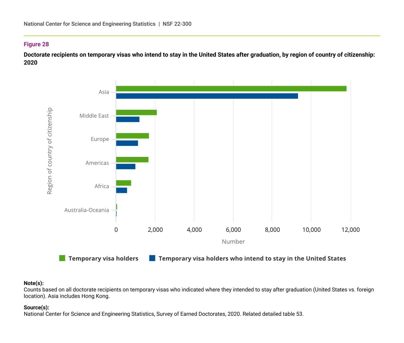 | Region of country of citizenship | Temporary visa holders | Temporary visa holders who intend to stay in the United States |