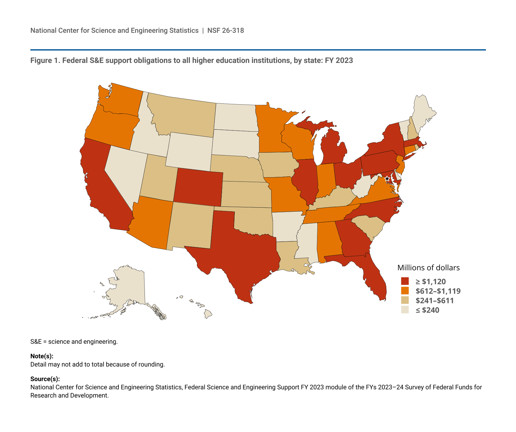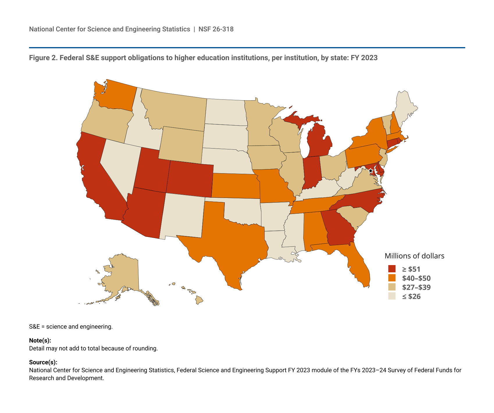 National Center for Science and Engineering Statistics (NCSES). 2026. Distribution of Federal Science and Engineering Support to Higher Education Institutions Across States. NSF 26-318. Alexandria, VA: U.S. National Science Foundation. Available at https://ncses.nsf.gov/pubs/nsf26318.